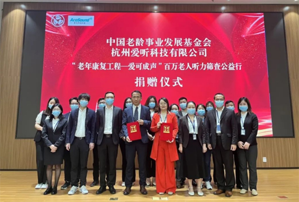 On the morning of May 9th, the donation ceremony of the "Rehabilitation Project for the Elderly - Love Can Become Sound" hearing screening for millions of elderly people organized by Hangzhou Acosound Technology Co., Ltd. and China Aging Development Foundation was held in the general conference room of Acosound Technology. held successfully.