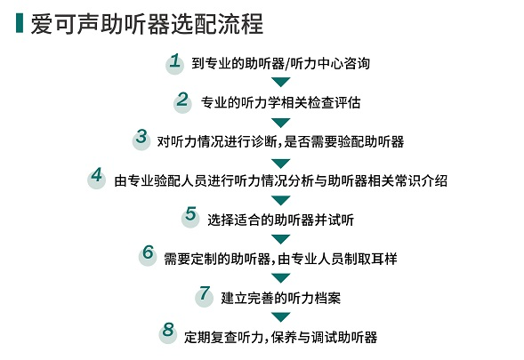 如何选配到适合自己的助听器?根据爱可声验配流程,问诊作为助听器验配流程一步,同时,也是贯穿于整个验配流程中的一个重要环节。助听器验配师的专业水平通过问诊体现出来,通过不断深入地询问,才能挖掘到患者的真实的强需求,从而建立起对助听器的合理期望值。