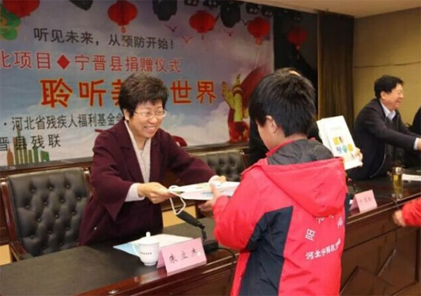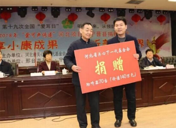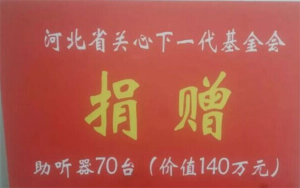 由河北省关心下一代基金会和河北省残疾人福利基金会在这里共同举办助听器捐赠活动,原河北省委书记,现河北省关心下一代委员会主任叶连松同志,省残联党组书记、理事长朱立杰同志,河北省残联人福利基金会秘书长边路海同志,在会上做了重要发言,号召全社会行动起来关爱弱势群体,多关心残疾人,多为他们做好事、办实事、解难事,增强残疾人的获得感。