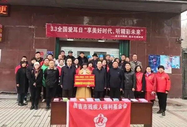 同日,昌吉州、市残联和市残疾人慈善基金会联合举办了爱耳日主题宣传活动。活动中,昌吉州残联和市残疾人慈善基金会向市残联捐助了100台爱可声助听器,并现场给20多名听力障碍者进行免费配发,不久后,其剩余部分也将陆续发放到位。