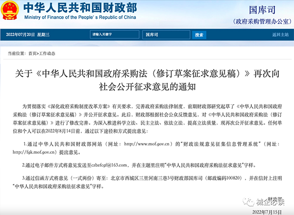 2022年7月15日,财政部国库司发布一篇关于采购法的意见稿。针对近20年来我国政府采购暴露的一些问题,《意见稿》从制度层面上开创了一系列全新的做法,进一步完善政府采购制度改革。新版政府采购法一旦完成修订,将彻底颠覆国内采购市场,尤其是医械企业。