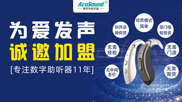 现在,爱可声渴望有更多的人能够加入我们,一起为爱发声!现诚邀区域代理,共同发展。详情可以登录“爱可声助听器官网”,了解更多。
