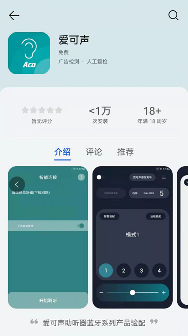 这款爱可声灵犀助听器,支持自主测听、智能AI验配、远程验配技术。助听器远程验配技术在国内市场是很新颖的,目前只有爱可声一家攻克了这项技术。主持人随后在手机演示了操作过程。先去软件商城下载爱可声APP,打开蓝牙,链接灵犀助听器,然后就可以把助听器当做听力计,手机就是一个验配师,通过助听器的声反馈在手机上点一点,就可以测出自己的听力水平,然后AI就能够根据听力水平智能得把助听器调试好了。
