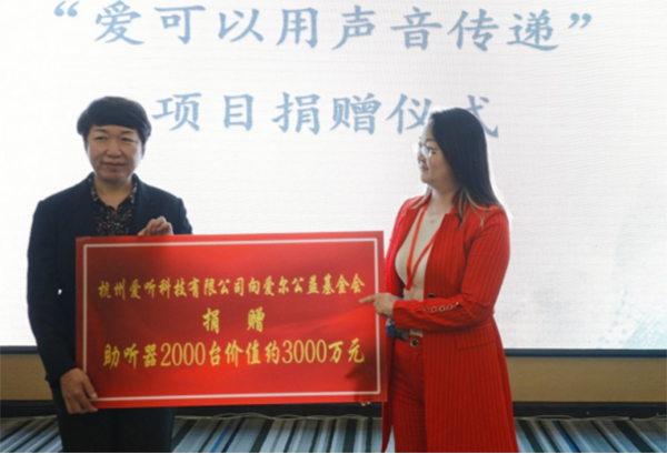 “爱可以用声音传递”听力关爱项目由北京爱尔公益基金会与杭州爱听科技有限公司于2021年携手发起,弘扬“民族品牌、中国制造”的理念,有效帮助听力障碍群体(包含残疾人,老年人、退役军人及优抚对象等)解决听力困扰问题,提高其生活质量。项目计划实施10年。