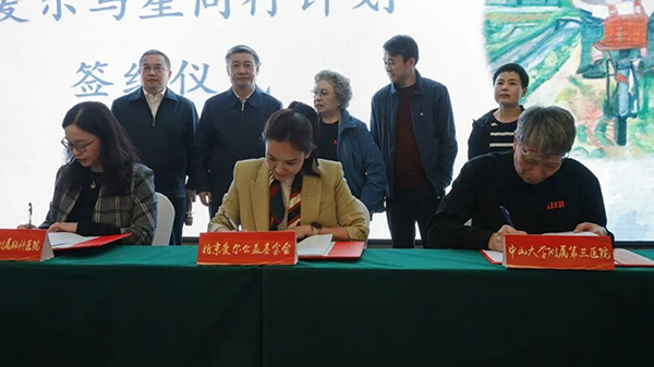 由爱尔公益基金会、中山大学附属第三医院、南京医科大学附属脑科医院共同主办的“与星同行”计划宣布启动。张碧波秘书长,邹小兵教授,柯晓燕教授代表三方签约;陶斯亮会长,杨捷理事长,佟国清书记,吕振亚社长,王跃春社长参加了启动仪式。