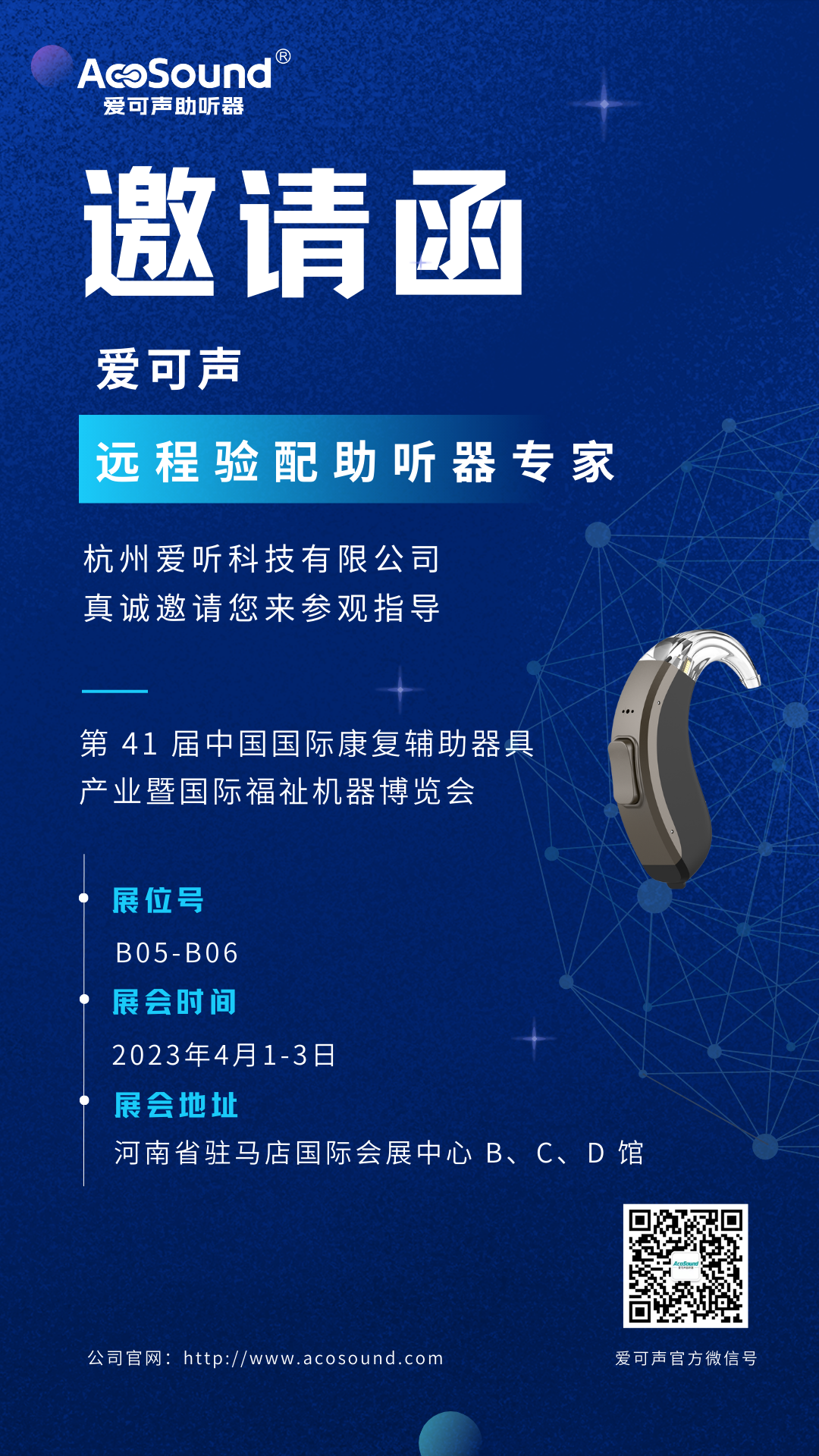 爱可声与中国残疾人辅具中心合作成立中国辅具技术研究所爱听智能听力辅具研究中心,爱可声助听器与您相约B05-B06展位,届时欢迎广大用户及合作伙伴莅临展位,现场参观指导。