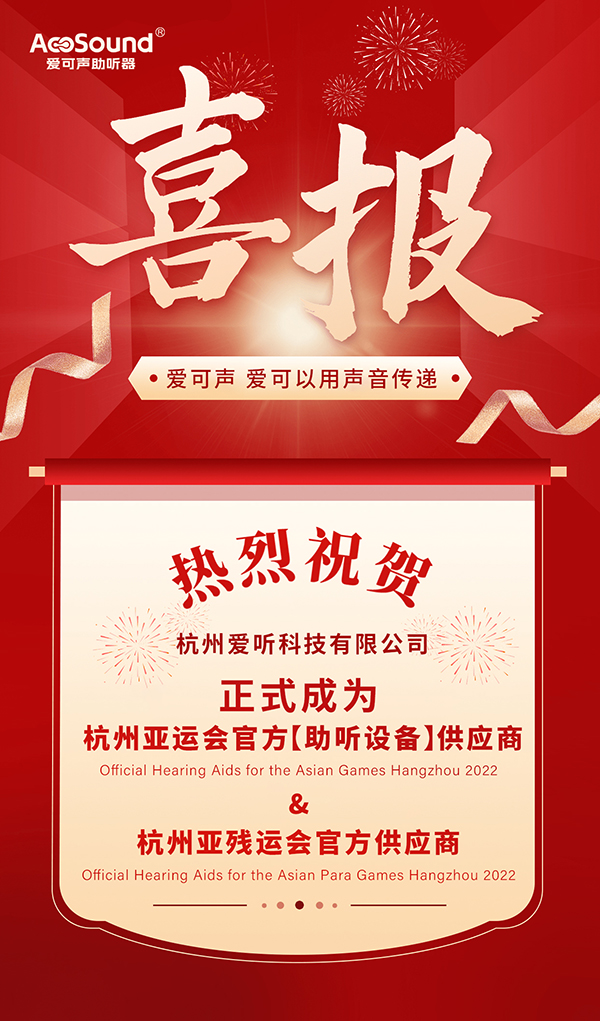 喜报!杭州爱听科技-爱可声助听器成为杭州亚运会官方【助听设备】供应商&亚残运会官方供应商!
