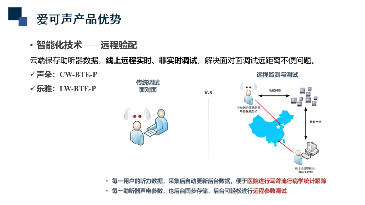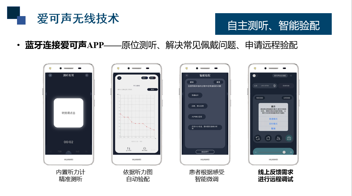 3.爱可声助听器也是唯一一家把蓝牙远程验配助听器纳入本次项目的品牌,主要为了满足陕西省内所有听障老人可以享受多次专业调试,区县没有验配机构,或者不方便多次频繁调试的用户,可以在家享受专业远程验配,服务机构不用频繁上门服务、通过网络实现“面对面”调试。