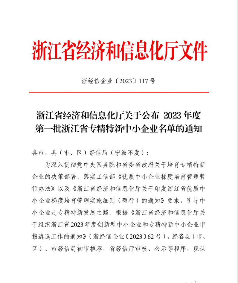 喜报!爱可声助听器被认定为2023 年度第一批浙江省专精特新中小企业!