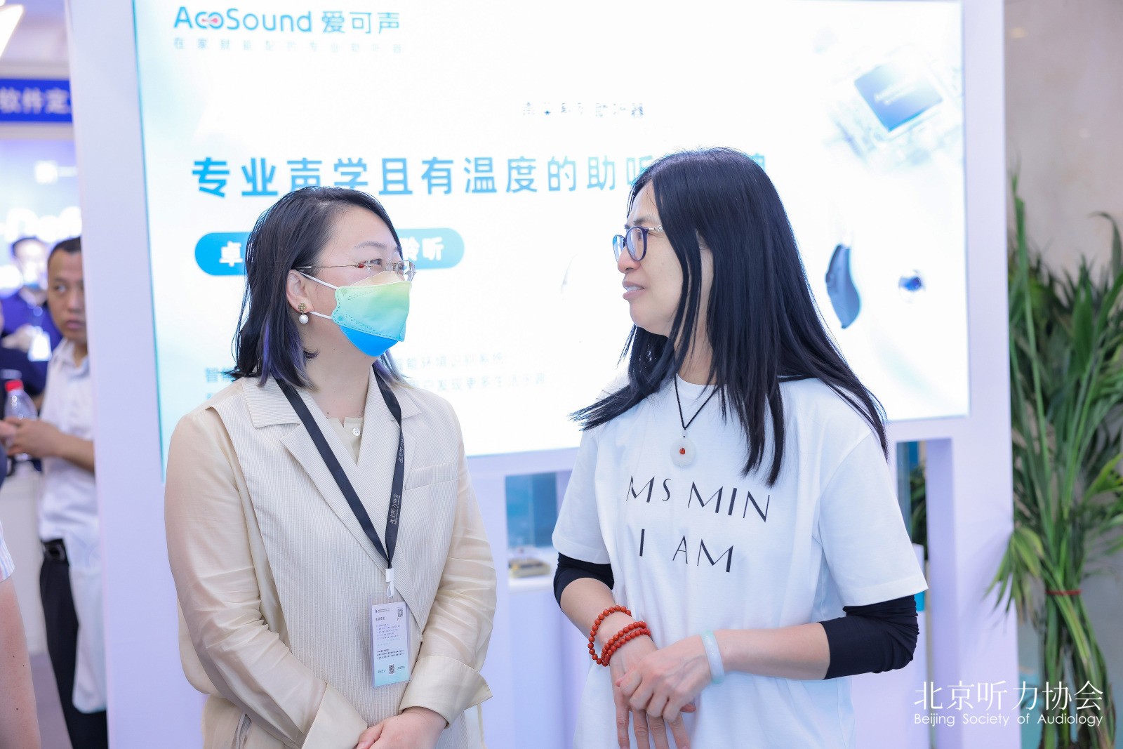 北京听力协会会长万敏和行业专家莅临爱可声助听器展位,与爱可声助听器创始人洽谈国产数字芯片技术与远程验配新技术,受到现场领导与同仁的一致认可。万敏会长强调,目前众多老年人的听力服务尚未满足,助听器佩戴率较低,这是一个刚刚开始的、亟待探索的广阔市场。万敏倡导行业专家,国际品牌、听力服务门店、新兴国产企业等在这一关键节点广泛联结,共同探索未来繁荣的听力行业。